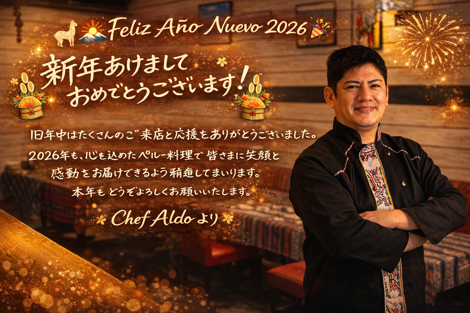 ALDO麻布台ヒルズ店の本年の営業は明日1月2日からとなります。前菜ビュッフェ付マチュピチュランチは3日(土)、4日(日)に開催いたします。|(マチュピチュ展News) 皆様の御来店を心よりお待ち申し上げます。